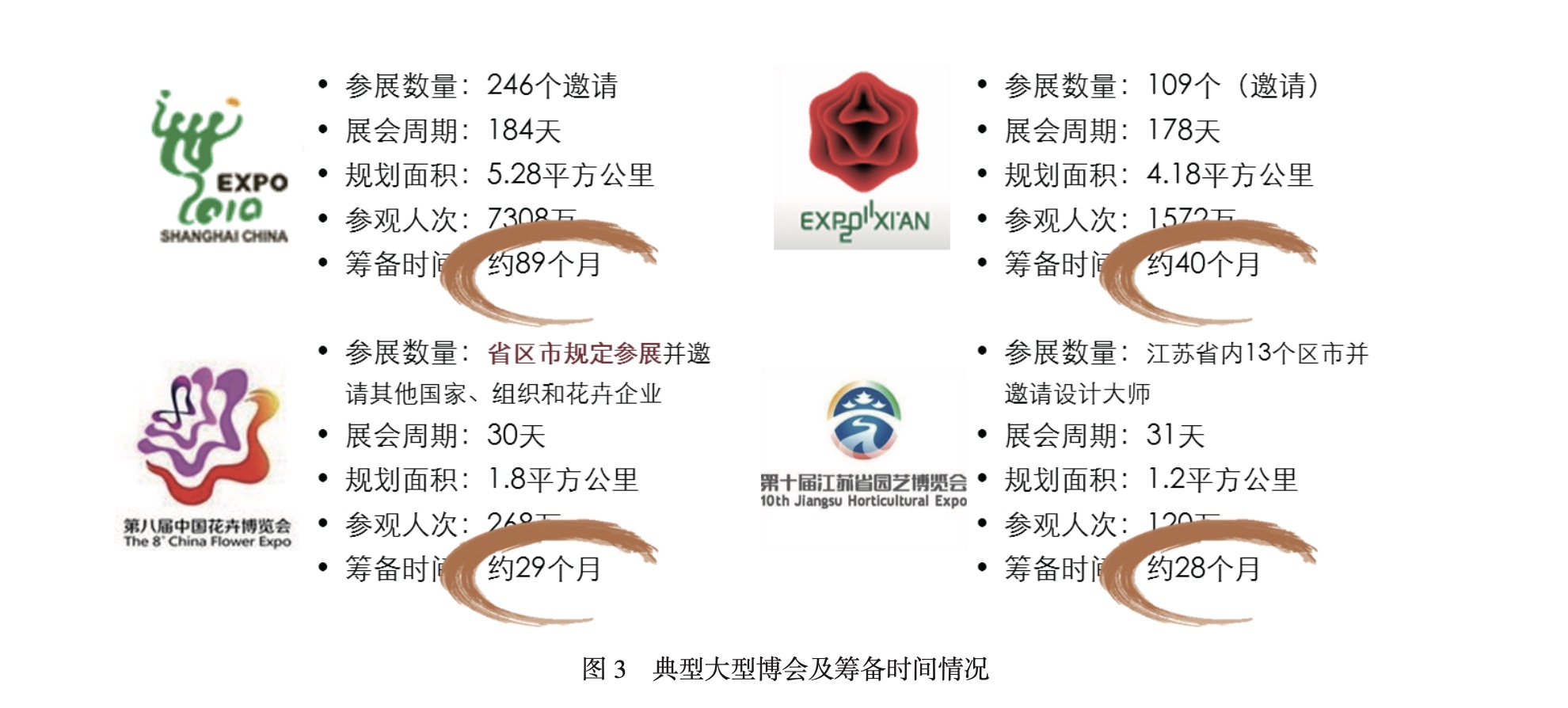 不同級別的博覽會在組織體系上有明顯不同。以世博會為代表的大型博覽會,由于是國家主辦,一般自上而下推動整體籌辦工作,早期階段即成立組委會和執(zhí)委會,建立完整順暢的組織體系,并配備較高行政級別的工作人員負責籌辦工作。一般由中央部委與省區(qū)市地方政府主辦的世園會、園博會,其組織體系以承辦單位為主,從下而上推動整體籌辦工作,因此往往受制較多,各地不得不結(jié)合自身特點構(gòu)建相應(yīng)組織體系,導致形成較大差異。省博會、區(qū)博會,則以實施單位為主,機構(gòu)調(diào)整相對靈活。