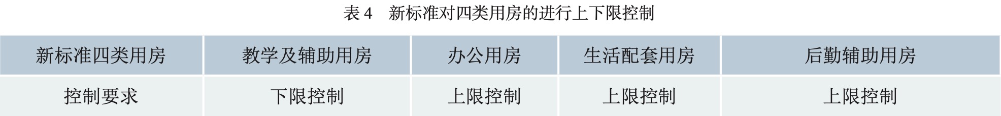 在劃分四大類用房的基礎(chǔ)上,新標(biāo)準(zhǔn)創(chuàng)新性提出了對教學(xué)及輔助用房進行下限控制,而對辦公用房、生活配套用房、后勤輔助用房進行上限控制的要求。這一突破的指導(dǎo)思想與進行大類控制的思路一脈相承,核心是希望學(xué)校強化教學(xué)科研職能,體現(xiàn)高校的核心價值。