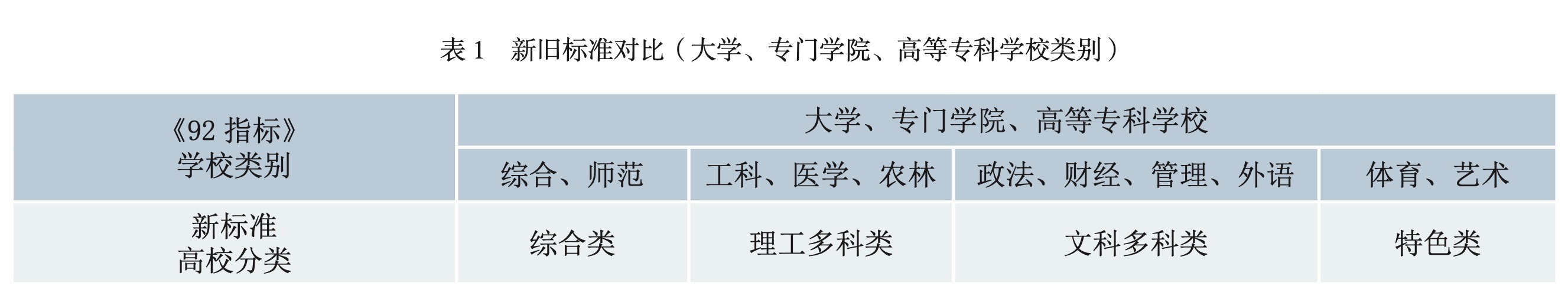 《92指標(biāo)》規(guī)定了綜合大學(xué)、師范、醫(yī)學(xué)、農(nóng)林、工科、政法、財經(jīng)、外語、體育9種本科學(xué)校類別,而教育部2012年發(fā)布的《普通高等學(xué)校本科專業(yè)目錄》中的管理學(xué)、藝術(shù)學(xué)等學(xué)科則無法歸類。同時,《92指標(biāo)》規(guī)定了工科、醫(yī)學(xué)、師范、農(nóng)業(yè)、政法、財經(jīng)、體育等7類??茖W(xué)校類別,而教育部2015年發(fā)布的《普通高等學(xué)校高等職業(yè)教育(專科)專業(yè)目錄》中土木建筑大類、旅游大類、文化藝術(shù)大類、新聞傳播大類、公共管理與服務(wù)大類卻無法歸類;隨之而來的問題是,上海??茖W(xué)生中約有1/4的人數(shù)屬于這五個科類,這部分需求在原有分類體系下無法涵蓋。