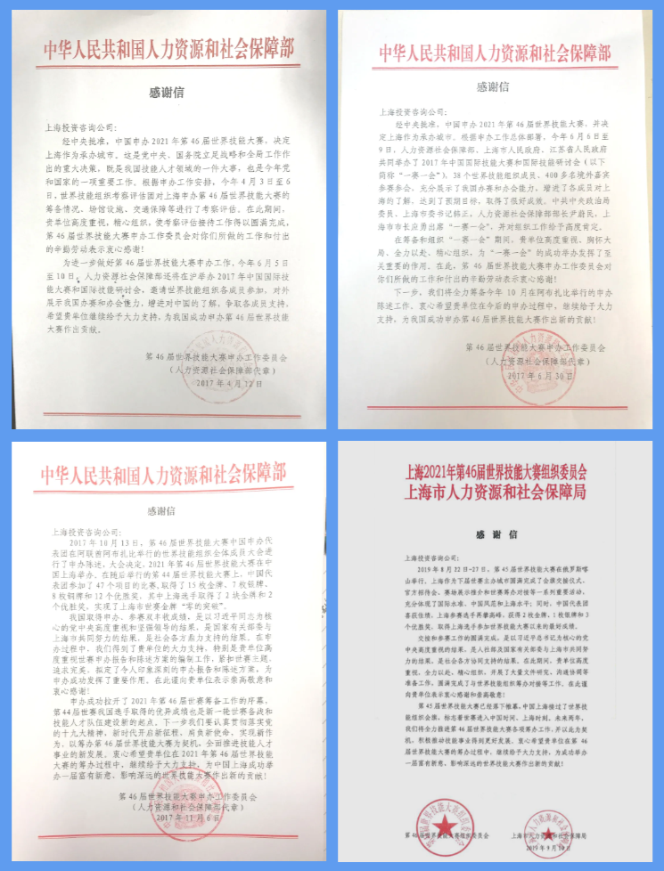在申辦階段,上咨公司作為上海世賽申辦領(lǐng)導(dǎo)小組成員之一,主要承擔(dān)申辦全過(guò)程咨詢服務(wù),歷時(shí)15個(gè)月,開(kāi)展了世界技能大賽申辦規(guī)則研究、世界技能大賽支持率調(diào)研、2021年第46屆世界技能大賽申辦報(bào)告、2021年第46屆世界技能大賽申辦陳述總體策劃等工作,為打好申辦“三大戰(zhàn)役”、最終取得申辦成功發(fā)揮了重要作用。第46屆世界技能大賽申辦工作委員會(huì)(國(guó)家人力資源社會(huì)保障部)分別于2017年4月、6月、11月三次向公司發(fā)來(lái)感謝信,對(duì)公司所做的工作予以充分肯定。由上咨公司完成的“中國(guó)申辦與籌辦2021年上海第46屆世界技能大賽綜合專題研究”項(xiàng)目獲得了第十二屆上海市決策咨詢研究成果獎(jiǎng)獲獎(jiǎng)。