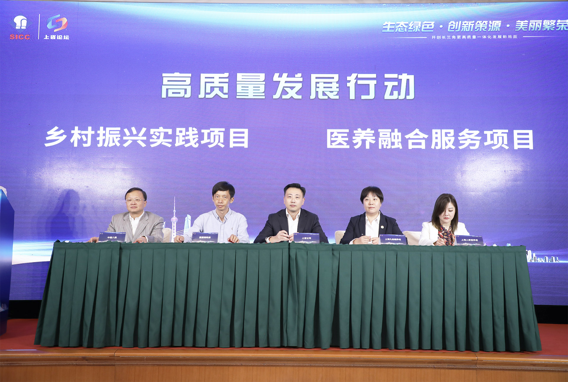 本次上咨論壇增設(shè)“上咨發(fā)布”環(huán)節(jié),由上咨公司牽頭,組織邀請(qǐng)華東師范大學(xué)、上海城投集團(tuán)、金澤鎮(zhèn)政府、市政總院、中建八局、重固鎮(zhèn)政府、九如城、人壽堂等8家政府、企業(yè)及院校代表共同啟動(dòng)長(zhǎng)三角綠色高質(zhì)量發(fā)展行動(dòng),致力于參與生態(tài)理論實(shí)踐、鄉(xiāng)村振興和新型城鎮(zhèn)化實(shí)踐,及醫(yī)養(yǎng)結(jié)合社會(huì)事業(yè)項(xiàng)目實(shí)踐等工作,譜好長(zhǎng)三角一體化這篇大文章,為示范區(qū)建設(shè)賦能助力。
