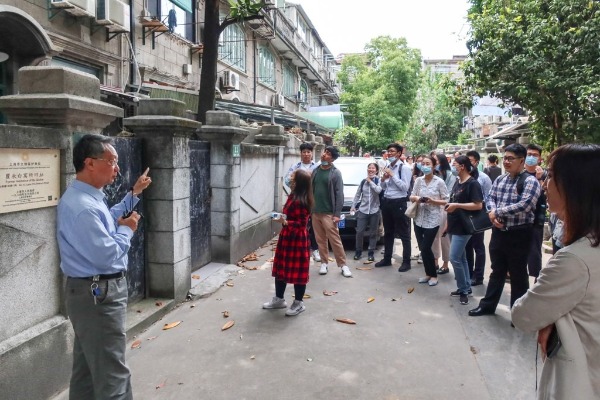 本次活動(dòng)邀請(qǐng)“多倫路街區(qū)的紅色記憶”現(xiàn)場(chǎng)教學(xué)課程創(chuàng)始人張家禾老師進(jìn)行現(xiàn)場(chǎng)授課。在張老師的帶領(lǐng)下,團(tuán)員青年以“行走的團(tuán)課”方式,沿著魯迅小道和多倫路,依次參觀了魯迅故居、瞿秋白故居、中共上海區(qū)委舊址、內(nèi)山書(shū)店、左聯(lián)會(huì)址紀(jì)念館和“永不消逝的電波”故事原型李白烈士故居等我黨早期城市革命斗爭(zhēng)的舊址,聆聽(tīng)張老師講述每一個(gè)建筑背后的歷史事件和可歌可泣的革命故事。在李白烈士故居前,張老師用自己對(duì)李白烈士事跡的感悟,勉勵(lì)青年一代要堅(jiān)定信念、樂(lè)于奉獻(xiàn),要淡泊名利、甘于寂寞,要立足崗位、專研技術(shù),在各自的崗位上,為中華民族的偉大復(fù)興奮斗終生。