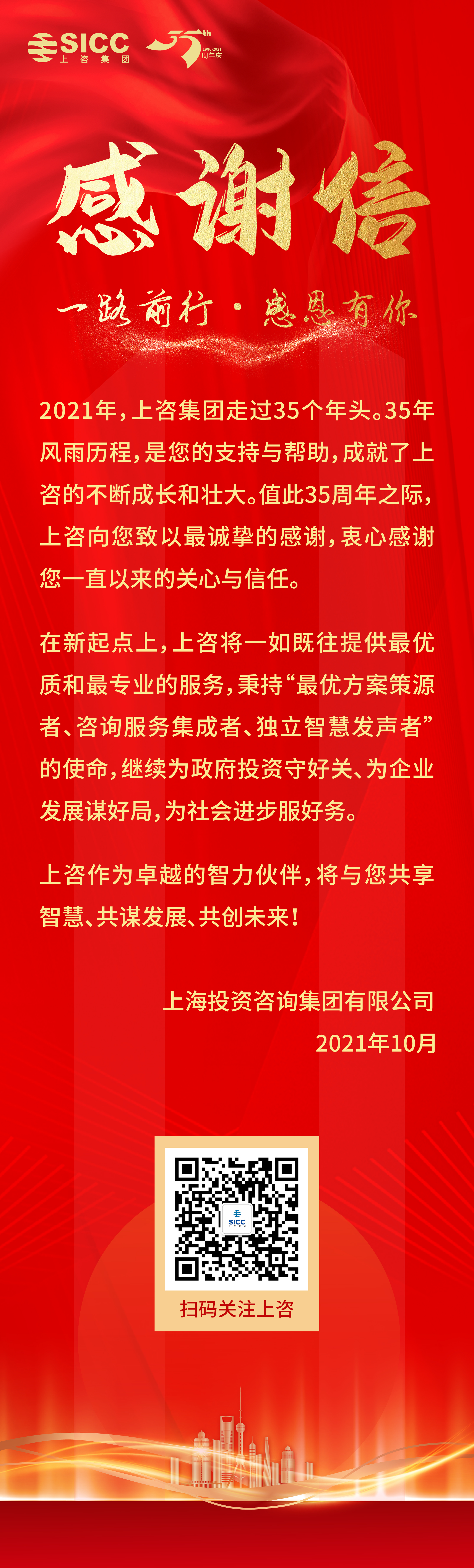 一路前行 感恩有你——上咨集團(tuán)35周年感謝信