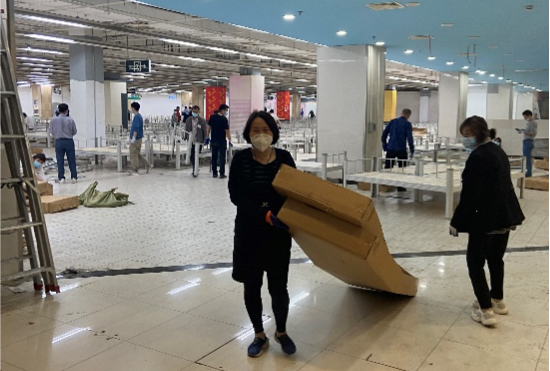 疫情就是命令,防控就是責任。上咨建設閔行項目監(jiān)理組在接到需要對位于閔行區(qū)擬建隔離點進行援建支援任務后,孫雅靜主動請纓,毅然奔赴現(xiàn)場開展支援工作。她沖鋒在前,全力以赴投入到拆除場地內(nèi)的廢舊掛板、廣告牌,清理衛(wèi)生,運輸床鋪組材,搭設床鋪等工作中,歷經(jīng)9個小時不間斷、無停歇的作戰(zhàn),1024個床位全部驗收交付,不負重托完成了支援任務。而此前,孫雅靜已在閔行項目工地連續(xù)值守了一個多月,克服各種艱苦條件,配合施工現(xiàn)場解決問題,確保項目現(xiàn)場疫情防控安全。她以柔美之軀扛起戰(zhàn)疫重任,展現(xiàn)了巾幗勇?lián)數(shù)娘L采。