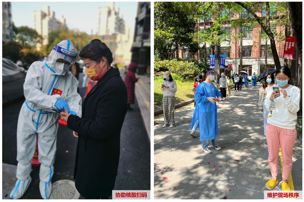 截至4月15日,在社區(qū)安排下,城建治理黨支部累計(jì)參與社區(qū)志愿服務(wù)19人次,涉及徐匯、虹口、楊浦、寶山、青浦等5個(gè)區(qū)。在核酸檢測(cè)現(xiàn)場(chǎng),在生活物資發(fā)放現(xiàn)場(chǎng),支部黨員群眾與社區(qū)干部并肩作戰(zhàn),為疫情排查、小區(qū)封控、群眾服務(wù)工作勇當(dāng)先鋒、爭(zhēng)作表率。