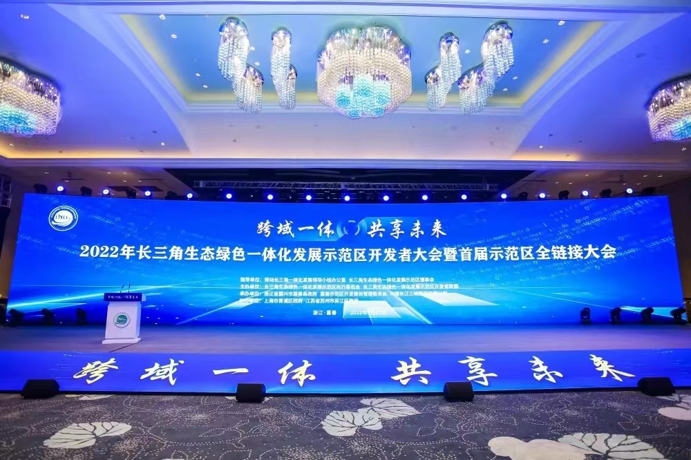 2021年9月23日,2021年長(zhǎng)三角生態(tài)綠色一體化發(fā)展示范區(qū)開(kāi)發(fā)者大會(huì)在吳江舉行。2022年7月13日,2022年長(zhǎng)三角生態(tài)綠色一體化發(fā)展示范區(qū)開(kāi)發(fā)者大會(huì)暨首屆示范區(qū)全鏈接大會(huì)在浙江嘉善召開(kāi)。上咨集團(tuán)兩度受邀參加大會(huì)。