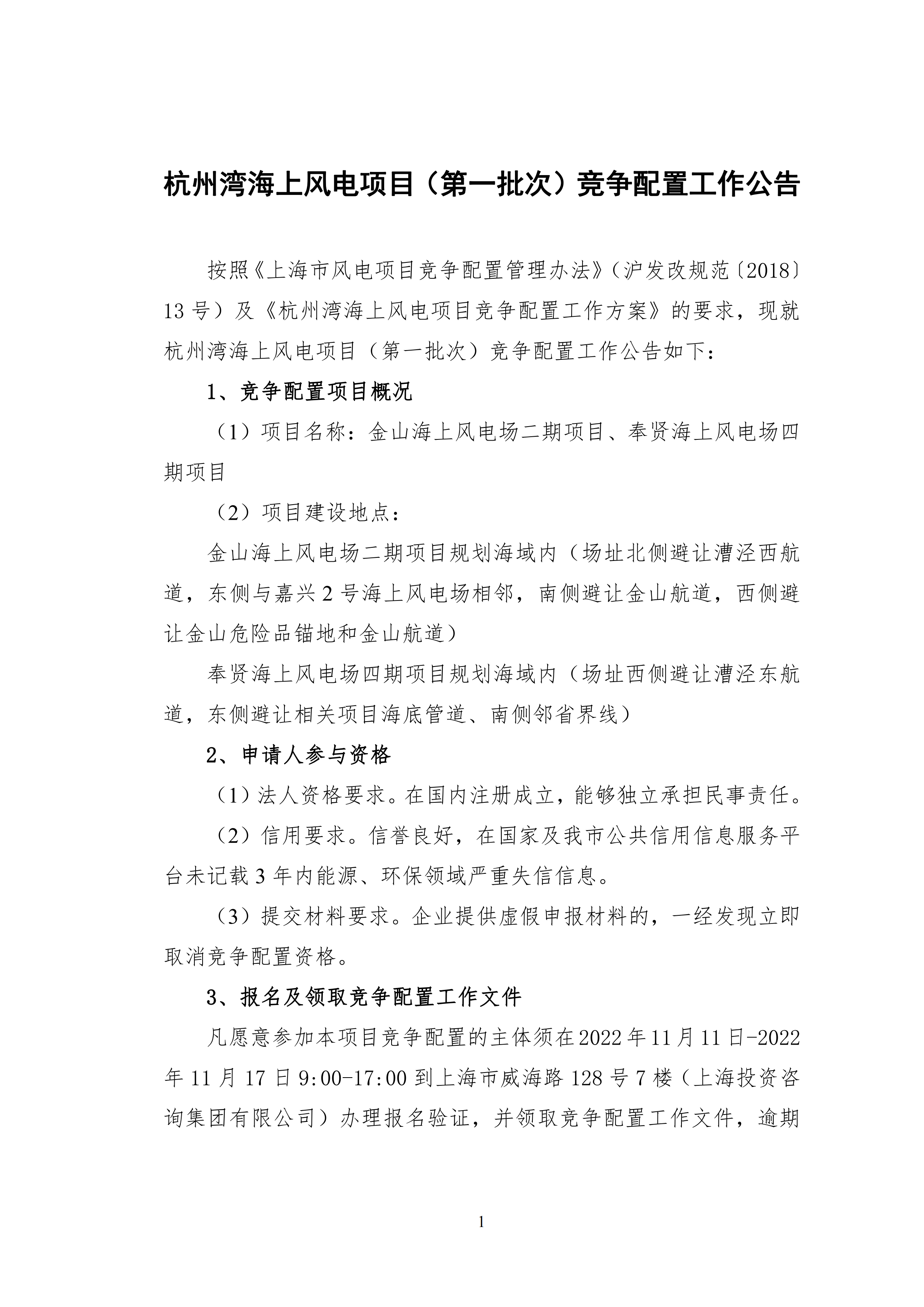杭州灣海上風(fēng)電項(xiàng)目(第一批次)競(jìng)爭(zhēng)配置工作公告