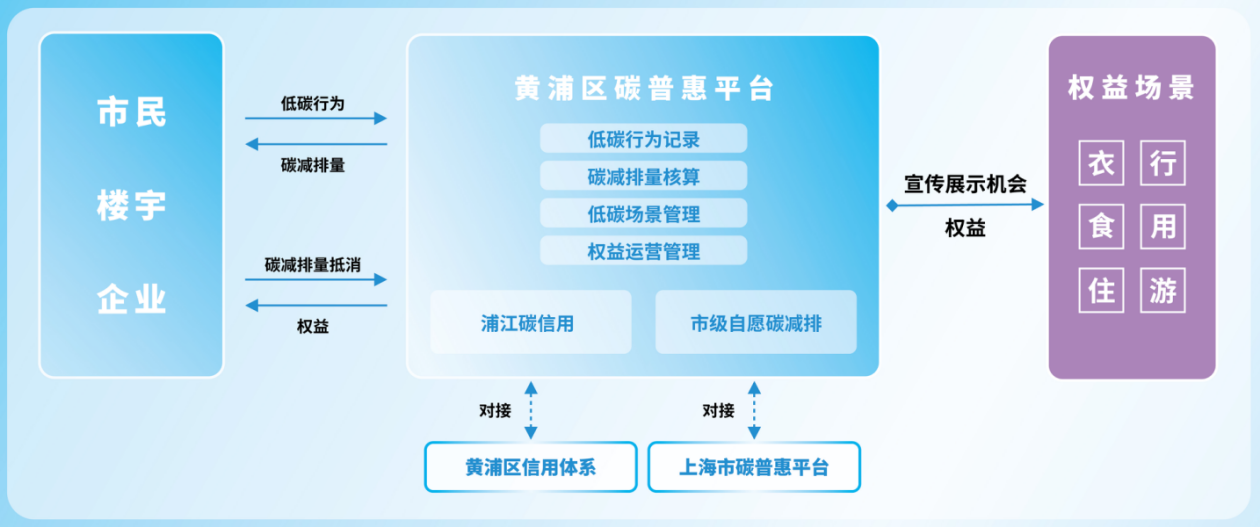 黃浦區(qū)碳普惠平臺以“綠色惠民”為宗旨,通過建立低碳行為的正向激勵機制,實現(xiàn)“踐行低碳行為→獲得碳減排量→減排量兌換權(quán)益”的閉環(huán)。平臺圍繞綠色出行、循環(huán)利用、減塑限塑等建立了一批與市民低碳生活息息相關(guān)的低碳場景,并同步建立碳減排量的權(quán)益兌換商城,引導市民參與綠色消費,踐行低碳生活。