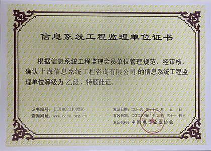 信息系統(tǒng)工程監(jiān)理單位乙級(jí)證書(shū)